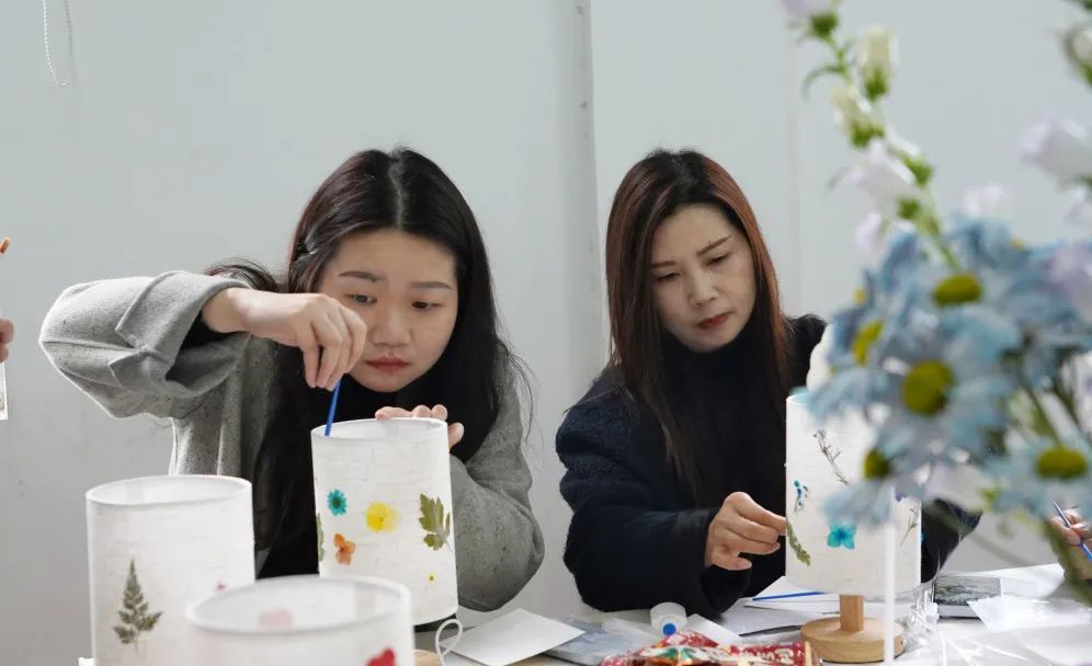 現場歡聲笑語不斷,大家交流著手作技巧,分享著生活趣事,氛圍其樂融融。當燈光亮起,柔和的光線透過帶有花朵的燈罩,散發出溫馨的氣息。