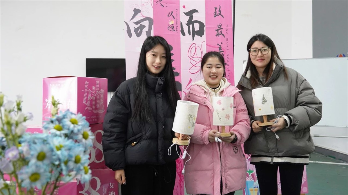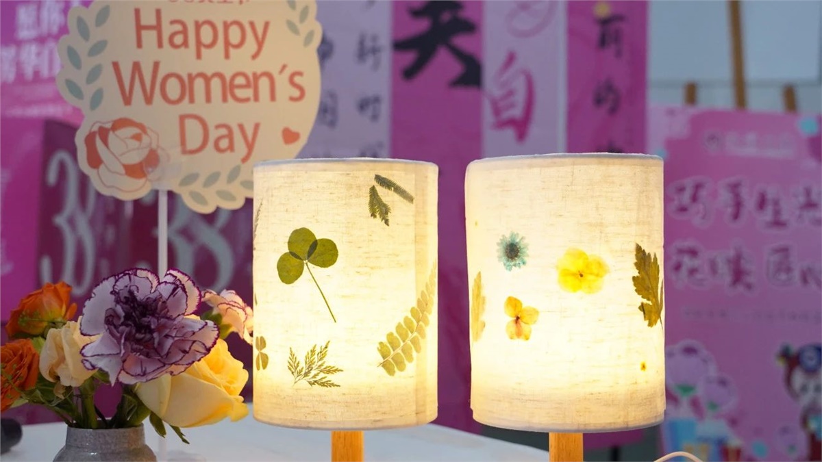 為了讓公司的女性員工在忙碌的工作之余,盡情享受節日的歡樂,公司特別準備了手工壓花臺燈制作活動。活動現場,女員工們圍坐在一起,挑選著心儀的干花,小心翼翼地將花瓣一片片摘下,再精心排列組合,粘貼在臺燈燈罩上。