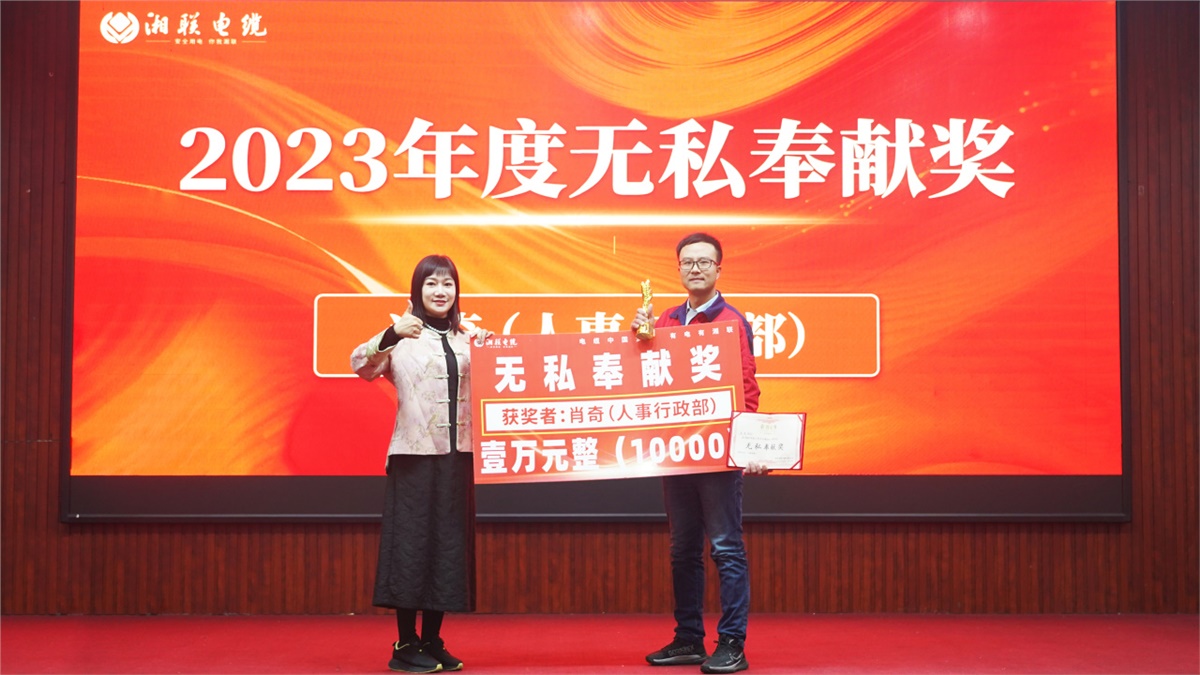 學先進應爭當先進,趕先進才能先進輩出。公司的發展離不開每一位恪盡職守、辛勤付出的優秀湘聯人,在盛會上,對2023年度表現優異的個人和團隊進行了一一表彰頒獎,頒發獎項包含主人翁精神獎、卓越功勛獎、無私奉獻獎等十二個獎項,獎品包含商品房、現金、榮譽證書、獎杯,激勵全體員工以先進為榜樣,向優秀靠近,2024年再創佳績。